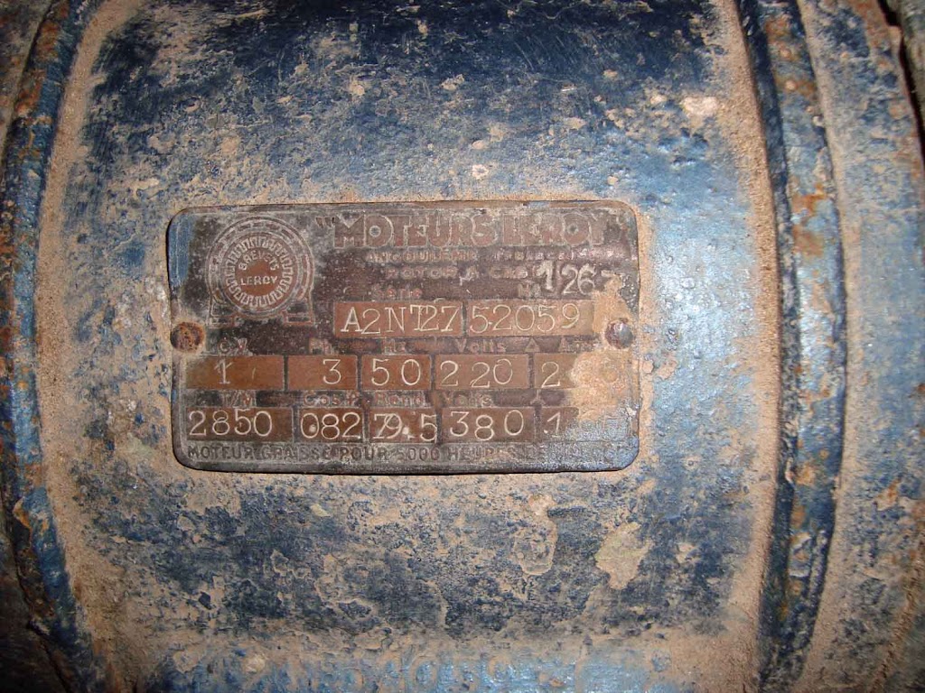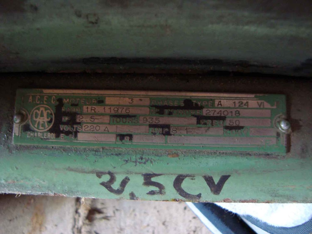photo 2 : 220V triphasé uniquement. Totalement inutilisable, il y a bien longtemps que ce courant n'est plus distribué. Je préconise le traitement habituel : extraction du stator, découpe d'un coté du bobinage à la disqueuse et hop, dans la braise.
